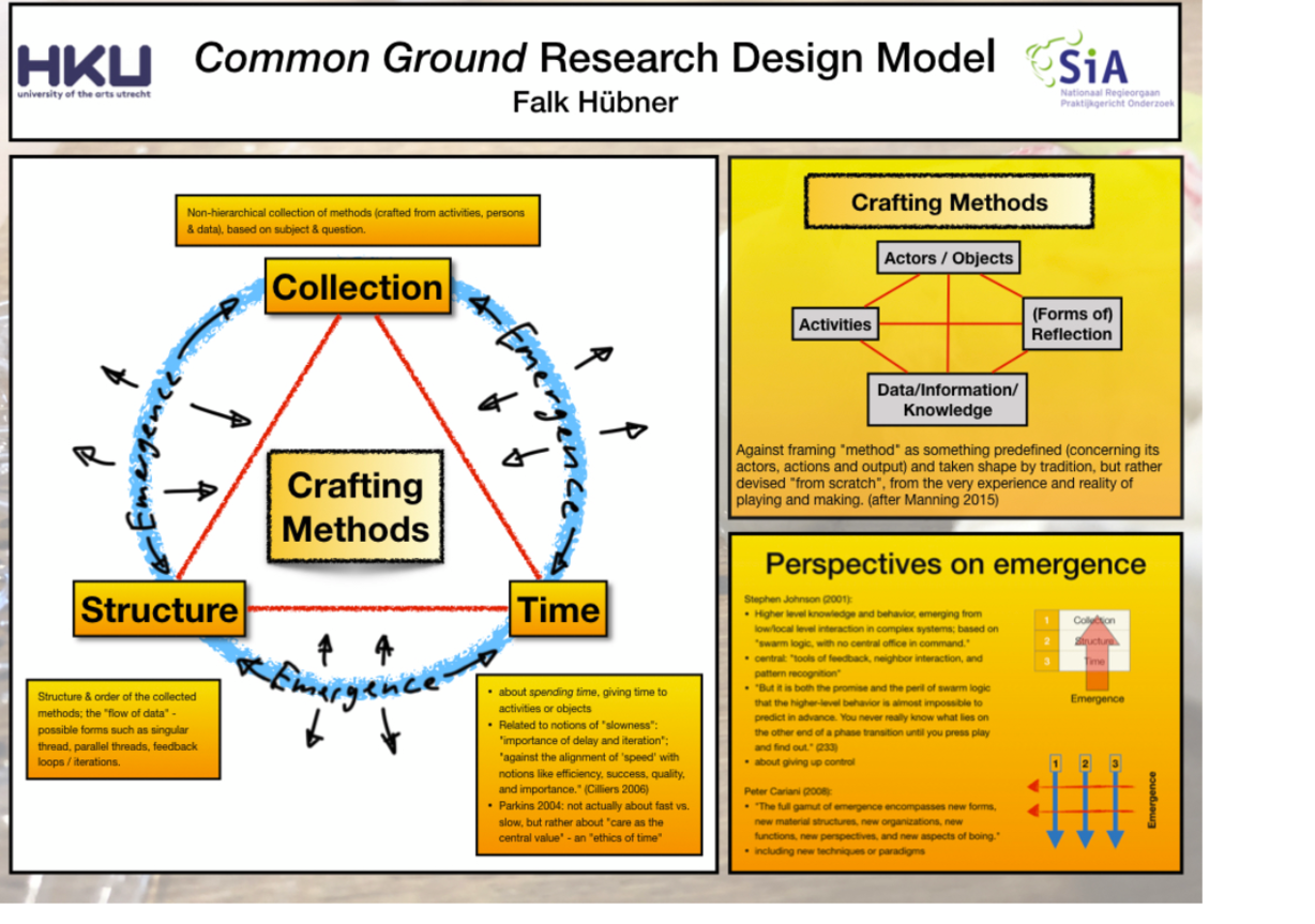methodes zoals (niet exhaustief): schetsen, tekenen,31 werken met metaforen en analogieën, reflecteren, participeren, experimenteren, interpreteren, modelleren, filmen, fotograferen, schrijven, (an)noteren, storyboarding,32 ontwerpen van digitale/ multimedia/hypermedia applicaties,33 werken in en met archieven en databases, concepting, mapping, enzovoort.34