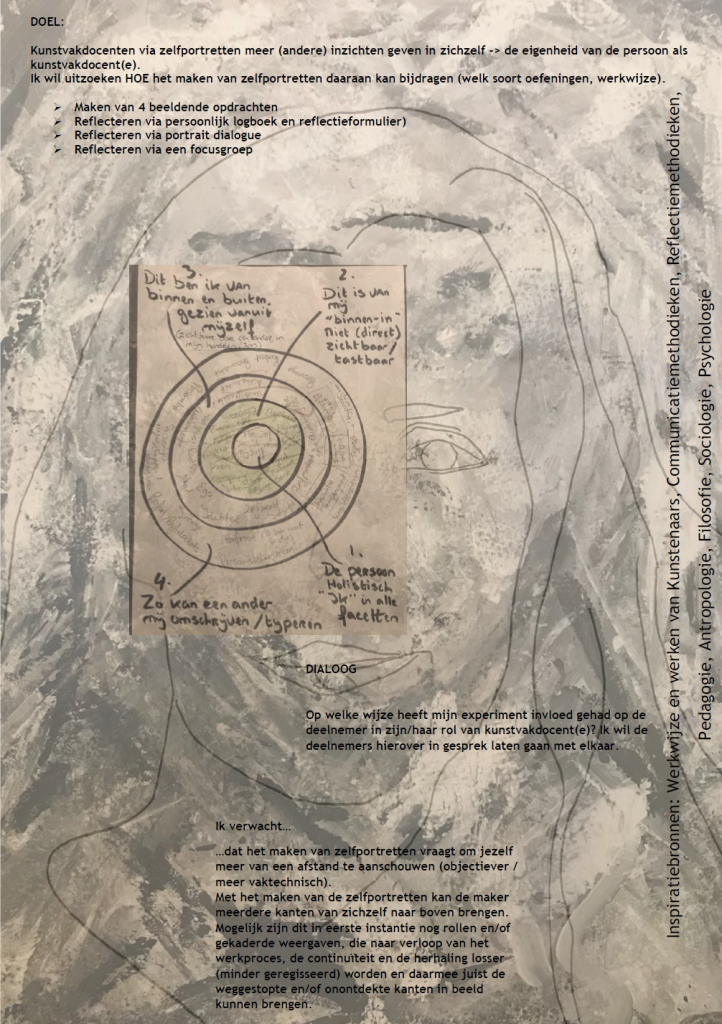 Maak: Visuele Kunsteducatieve positionering met jouw in relatie tot je velden en de bronnen (zie voorbeeld(let op: alleen bovenste gedeelte ingevuld) voel vrij om een eigen vorm te vinden dit mag digitaal of fysiek)