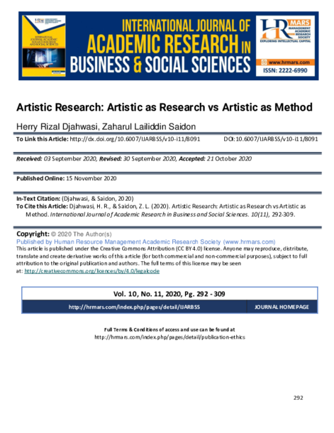 existence. What about John Dewey’s “learning-by-doing” is not only an exclusive educational principle but underlies the epistemic point of view of scholarly in general (Westerlund, 2003), when we refer to this thinking, artistic as research is a kind of thinking in action.