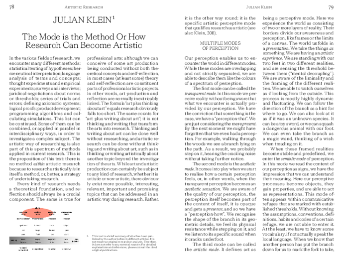 In artistic as research, the methodology is considered as the way art is processed.