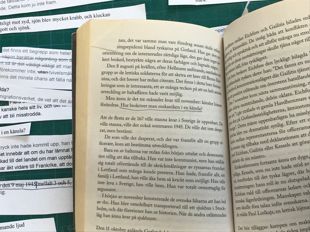 Jag befinner mig i Genua när jag läser P.O. Enquists bok Legionärerna. Den beskriver sakligt förhållandena och känslorna i relation till omständigheterna för Baltutlämningen. Det är vår 2018 och 50 år sedan boken utkom. Jag förstår instinktivt att det här har med mitt nästa projekt att göra. I en stark känsla av intuition köper jag en militär uniform från 1945 och ber min granne Gunnar att stillsamt klä sig i den när jag filmar honom. 73 åriga händer som metodiskt knäpper knappar och drar på strumpor. Gunnar gjorde militärtjänstgöring i Eksjö, på Ränneslätt. Det var där balterna internerades innan utlämningen. Det finns en film gjord efter boken. I öppningsscenen av denna film klär en militär av sig, stillsamt och metodiskt för att därefter ta sitt liv.
