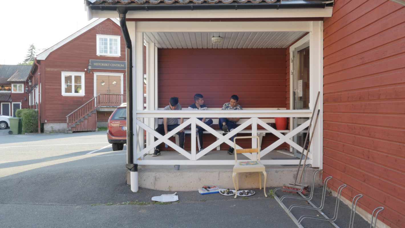 Föreningen Kvar i Eksjö och Röda Korset arrangerade en bussresa med fika för de ensamkommande ungdomarna. Resan gick till Filmbyn i Mariannelund. Det är ett museum med uppbyggda kulisser från Astrid Lindgrens filmatiserade sagor. Senare reste Asadullah, Alisina, Abbas och jag tillbaka dit. Tillsammans iscensatte vi deras första möte med museet, där de då suttit i de interaktiva miljöerna och fotat varandra med sina mobiltelefoner.
