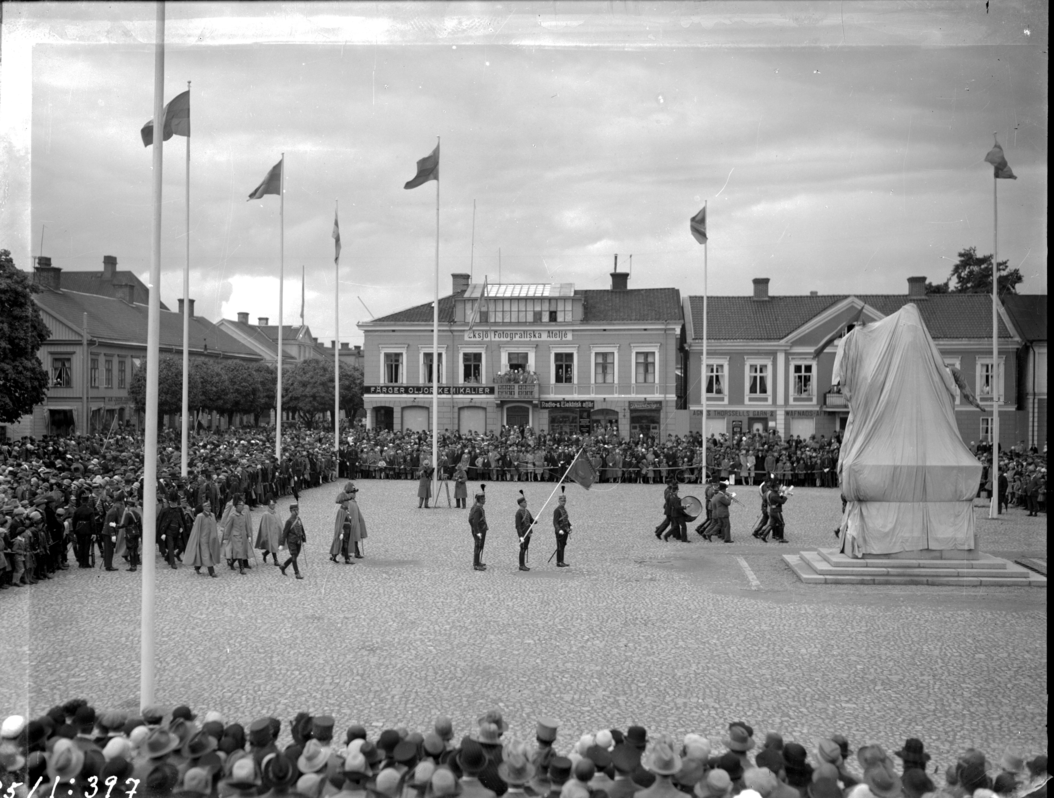 Ryttarstatyn på Stora torget i Eksjö invigdes på midsommarafton 1929. I folkmun kallas den för “den okände ryttaren”. Statyn syns aldrig i bild i projektet. Istället fungerar den som en symbol som i slutändan byts ut mot en ny okänd ryttare.