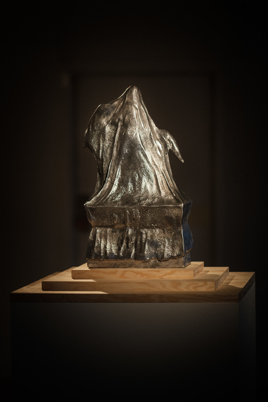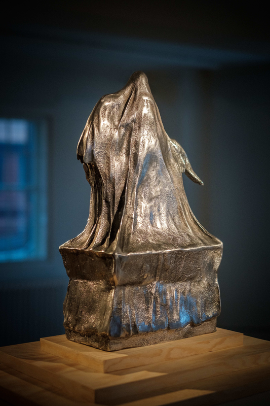Jag har gjort en skulptur av ryttarstatyn som föreställer stunden innan den avtäcktes. Formen är gjord i lergodslera och gjuten i massiv aluminium.