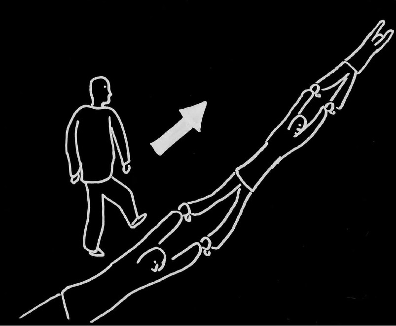 3. Äänimerkki on signaali viimeiselle jonossa olevalle, että hänen täytyy nousta eteen ja kulkea jonon ensimmäiseksi.Maassa makaava jono kierretään vasemmalta puolelta.