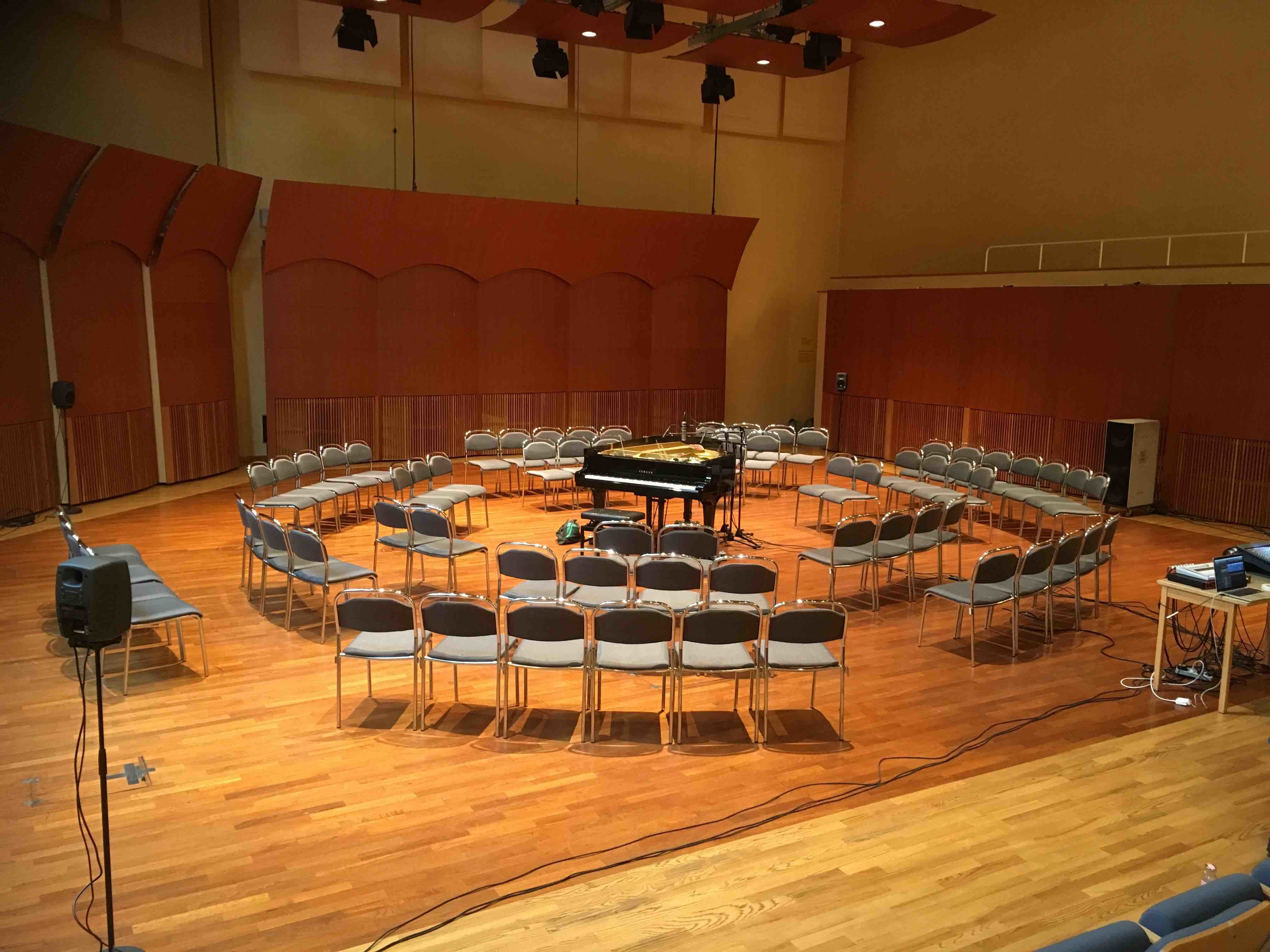 Piano and speaker set up, Sjöströmsalen, Gothenburg University, October 2016