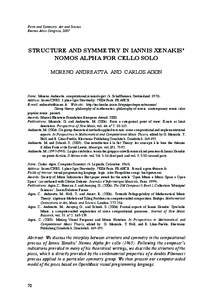 Nomos Alpha of Iannis Xenakis is very impressive for the audience when you listen to it for the first time. It was my case when I heard this piece ten years ago. My second experience was when I played it. It’s a real performance to play Nomos Alpha for several reasons: there are many instrumental innovations; like a lot of quarter tones, and double stops with different dynamics on the two strings, and the piece is very long (20min). Nomos Alpha was composed in 1965-1966 and is a characteristic piece of Iannis Xenakis. He was an architect, and uses sciences and mathematics to compose music. In this research I will try to analyze Nomos Alpha and explain what kind of mathematical concepts he used to compose it.