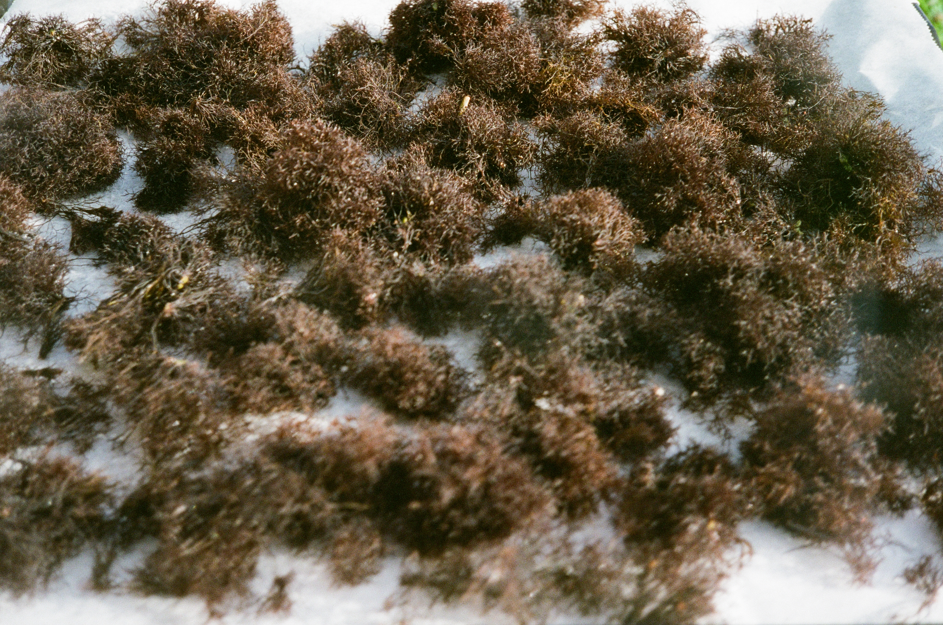The qualities that reverberated through the kelp assemblages and us were not purely tactile and visual. Sabine cooked a specimen of Laminaria Digitata. While in contact with warm waters, kelp dies and its leaves change their colours to a very bright green. While the colour they reach is beautiful, it is probably the colour kelp is turning briefly into before dying in the warming waters of the coastal areas in the southern sub-arctic region. When kelp is being cooked, it exhales a strong smell that may not be comfortable to very sensitive noses. When I noticed the smell, I immediately retreated to the back of the store.