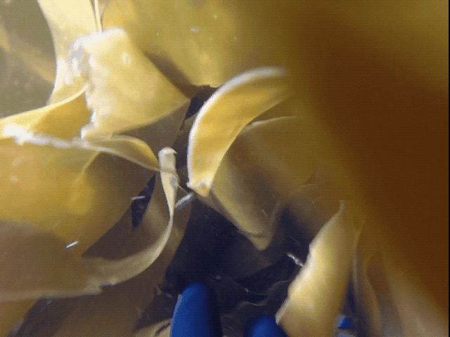 I attached an action cam in my left fist. The plan was to escape the more typical Go-Pro footage aesthetics and its intentionality. Also, on the second day, we went harvesting again, and the weather conditions in Napp were significantly worse. We always went to the intertidal zone during the low tide, but the velocity of wind had intensified. Curiously, the waves were not as fast as in the day before, but way stronger and higher; a fact that certainly has a scientific explanation but still surprised me. The camera in my fist witnessed the tentatives of holding to kelp and other algae to maintain my balance. Somebody said that the hands, covered by the gloves and filmed so closely - they actually rarely appear in the footage - did not look like human hands at all. What do they look like? I am still not sure as well.