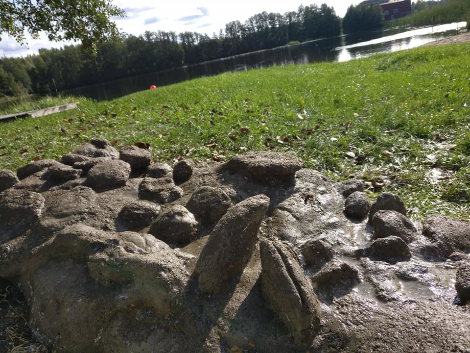 The freshwater pearl mussels project was an intervention that artist and art researcher Juhola designed for ISEAS. She wanted to create a permanent public art piece for locals in a prominent place – the village’s swimming beach – where nearly 100 years ago, local young men would dive into the river to catch mussels to give their betrothed a pearl to wear on her finger. The river environment has changed over the years, and river pearl mussels have become locally extinct. However, the intervention at Juhola’s request focused not only on freshwater pearl mussels but on all mussel species in Finland and their importance to biodiversity and aquatic ecology. The Mustionjoki River is the only remaining river in Finland where these species still exist (Lopes-Lima et al. 2017).