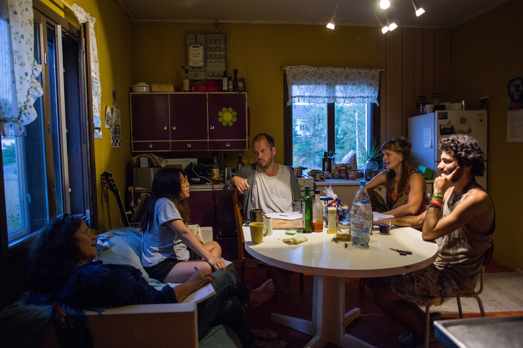Photo 1. Participants of ISEAS are having a meeting in Solhem residency kitchen. Photograph Fabio Cito.