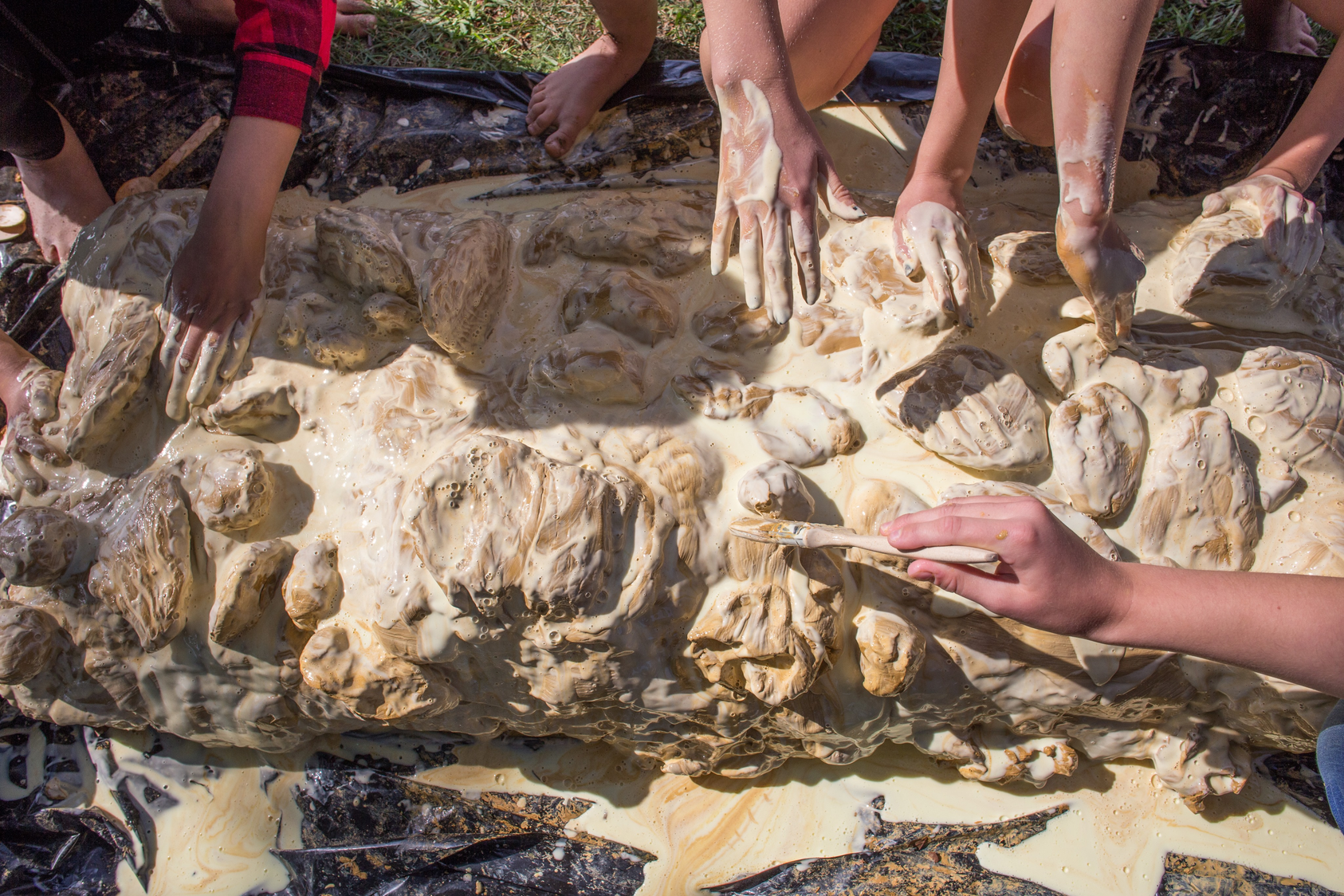 Photo 6: The pupils created a sculpture out of clay with artist Juhola. It represented the bottom of the river, where the mussels live. They placed the mussels in the proper position. The final piece is a concrete sculpture. Photograph by Fabio Cito.