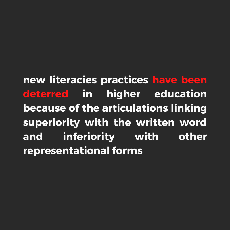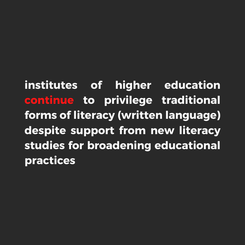 The term 'literacy' encompasses reading and writing practices, each with distinct meanings and histories. Scholars define individuals as 'literate' or 'illiterate' based on these practices, a point not to be taken lightly. New literacies studies have expanded literacy from print to encompass all forms of meaning-making, leading to an expansion of associated terminology. In American higher education, despite the expanded meanings of terms like 'writing' and 'text,' the term 'research' remains dominated by written language, even within dedicated disciplines (Coiro et al. 2008; New London Group 1996; Wilber 2008). Through a cultural studies perspective, I traced the historical evolution of American literacy to the present day. The study revealed darker consequences of literacy's past, providing insights for scholars to understand silenced voices and advocate for their inclusion in the future. Given the ever-expanding practices of literacy, the need for increased attention to writing instruction, and the problematic otherness of arts-based disciplines such as fashion, my goal is to broaden the range of accepted scholarly compositions in higher education. I believe this pursuit is key to the advancement of academic research publications. To address this paradox, I actively embraced new literacy practices by creating a dissertation supported by Barone & Eisner’s (2012) concept of arts based research. Drawing on my experiences in the industry, I sought to challenge views of fashion as frivolous by writing my dissertation in the language of dress, offering a new perspective on the interwovenness of literacy and fashion. My dissertation argues that fashion is a form of writing by exploring nonverbal communication in scholarly work. This move reconciled the perceived frivolity with the substantive nature of fashion and ignited my commitment to the acceptance of research in diverse language forms.