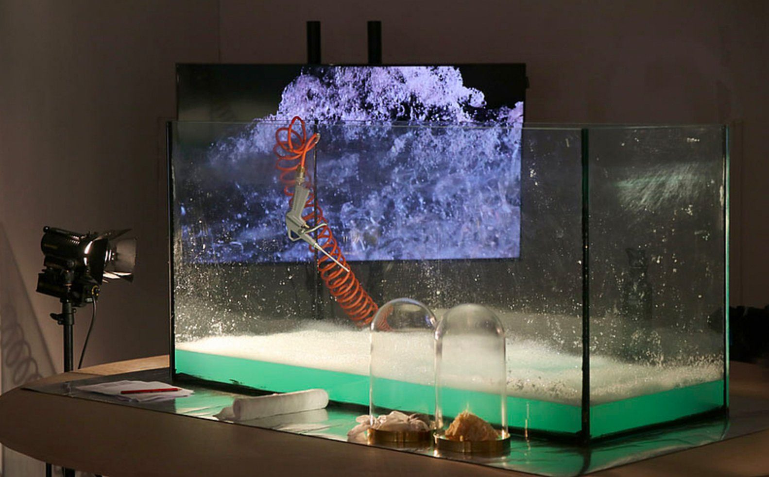 Foaming Exercises installation was both factual and fictional spacing for experimenting with parameters and simulations of foam-like coexistence. In the space of the installation, foam was a giver and a participator of the research, in asking what kinds of conceptual, metaphorical and imaginary pathways and outcomes material-based speculation facilitates.