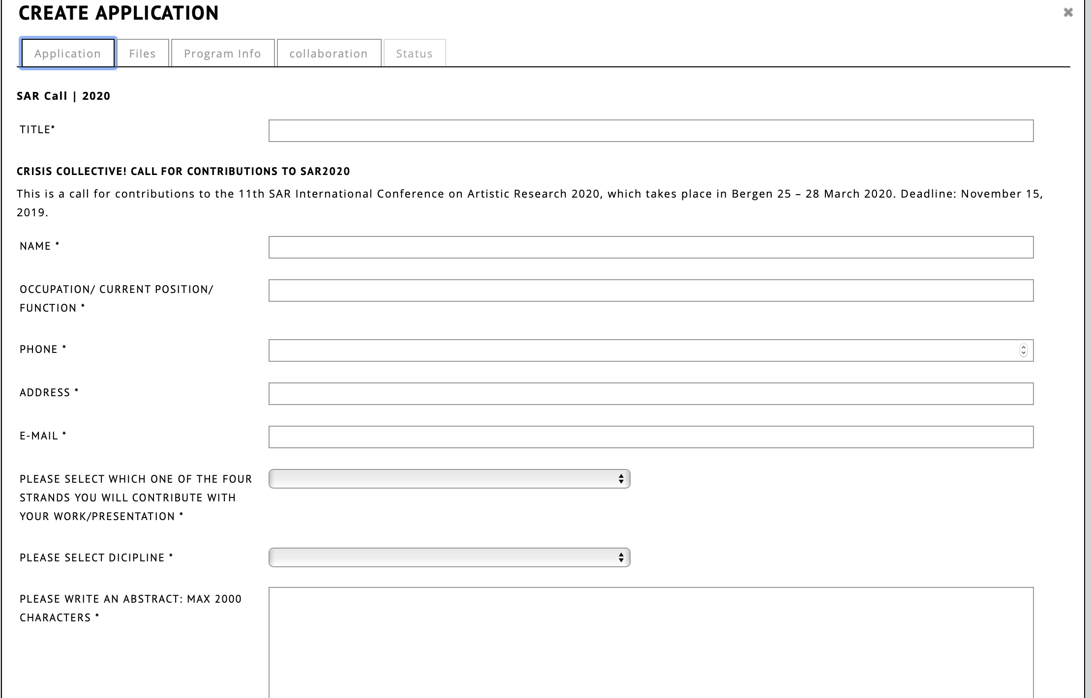 Click create application button and select “SAR Call | 2020” from the dropdown ( screenshot here ).