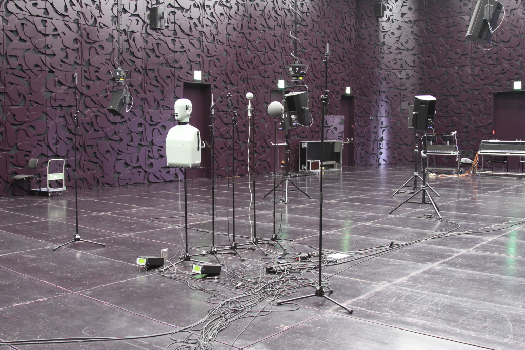 Therefore, using binaural auralisation techniques, we try to provide the means for applicants to this category to gain a perceptual experience of the Ligeti Hall's acoustics and to test how their works would sound in the Hall (with approximation).