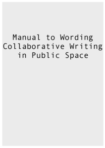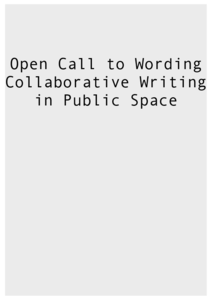 Wording is about shaping a public space using words and positioning ourselves in shared spaces and reciprocated texts. Wording has a performative quality as the writers in public space are being observed themselves, and the question is if this collective writing experiment acts as a countertext to the commodification of our corporeal selves. The subtitle Collaborative Writing in Public Space is a provocation to think about how we communicate and have an impact on each other when being in or traversing public sites.