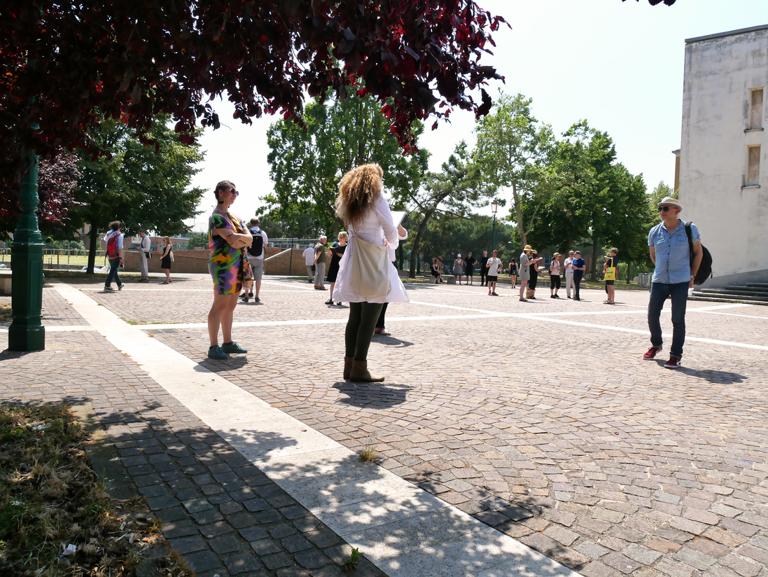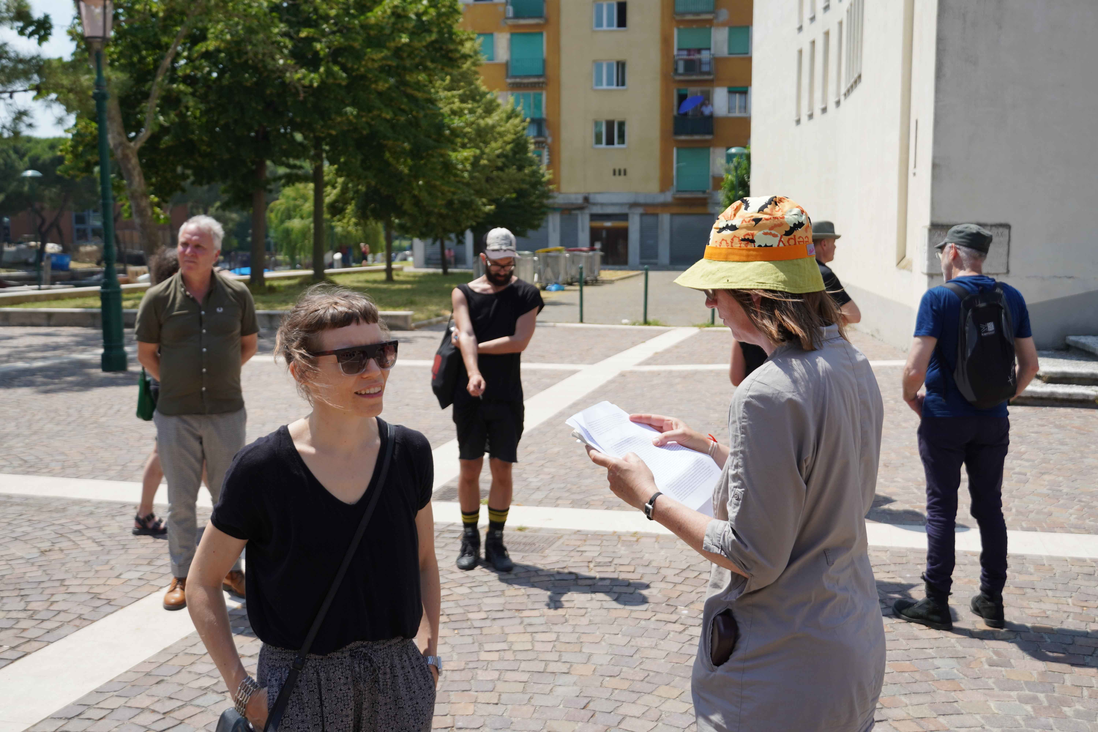 Wording takes on an auditive form at a reading of the texts written during the workshop Collaborative Writing in Public Space, and becomes a rewording. Rewording was performed 16/6/2019 at the symposium Convocation – On Expanded Language-Based Practices in Venice. The readers at Campo de la Chiesa on Sacca Fisola were: Ulla Prami, Lena Séraphin, Minna Heikinaho, Emma Cocker, Cordula Daus, and from the write.in-Gruppe Stefan Krüskemper, Michaela Nasoetion, Ingo Hampe, Raphaela Gilla, Kerstin Polzin, Elke Cremer and Harald Polzin.
