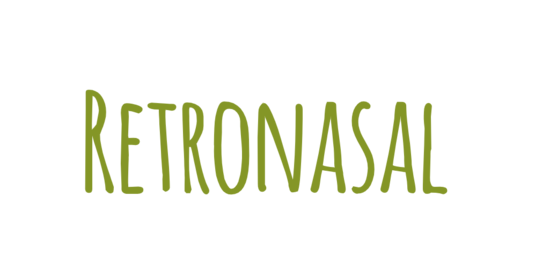 “Retronasal” refers to a smell which derives from the air that pulses out from the back of our nose when we swallow. In flavour perception, it is the retronasal smell that gives an enhancement to a flavour sensation. One little experiment suggested doing in order to feel the emphasis of retronasal smell is to put an encapsulated fruit (e.g., a grape) in your mouth while you close both of your nostrils and give it some chews before removing your hand from the nostrils. When air from the nose flows into the oral cavity, it suddenly arises the grape's aroma.