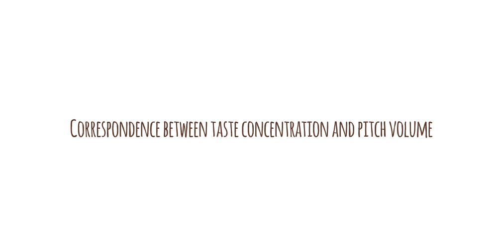 In the research by Janice Wang (2016), she evaluated participants matching basic tastes in different concentrations to pitch/volume of sound and role of emotions in crossmodal correspondences between taste and pitch/volume. The model of valence and arousal rating was used for defining different emotions. The results showed that taste quality and concentration significantly affect the choice of volume, pitch, and valance/arousal rating.