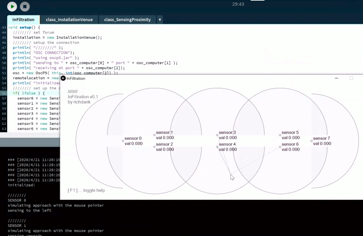 - Each row provides sensing, using capacitive sensing on the screens, which feeds into the respective Pi