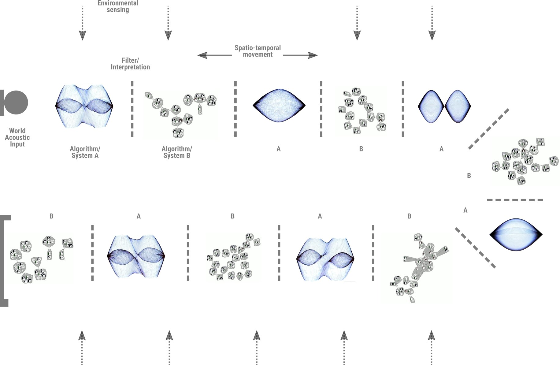 - Sound composition based on an "autonomisation" of the two systems used by Rutz and Pirrò for improvisation.