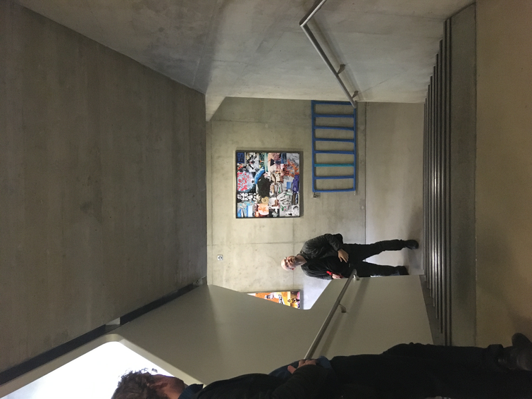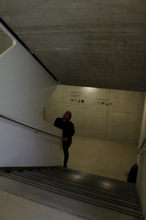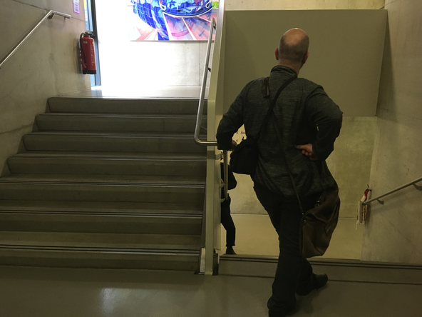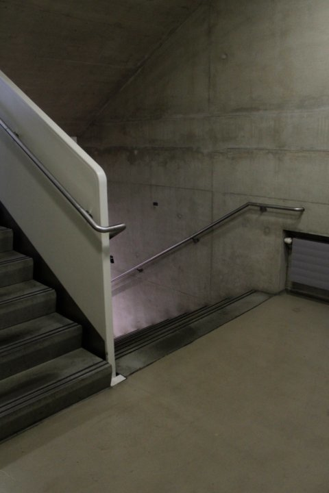 Tuesday 17th December, 10:15: standing in the middle between the two stair ramps, half meter from the wall, facing the stairs