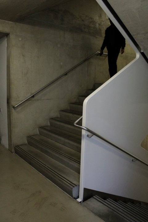 Tuesday 17th December, 10:30: standing in the middle between the two stair ramps, half meter from the wall, facing the stairs