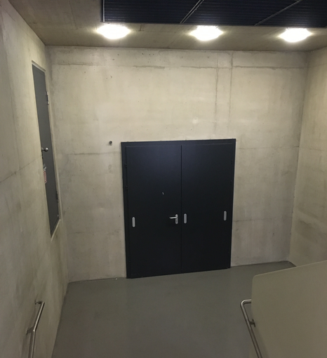 Wednesday 18th December, 11:10: standing in the middle between the two stair ramps, half meter from the wall, facing the stairs