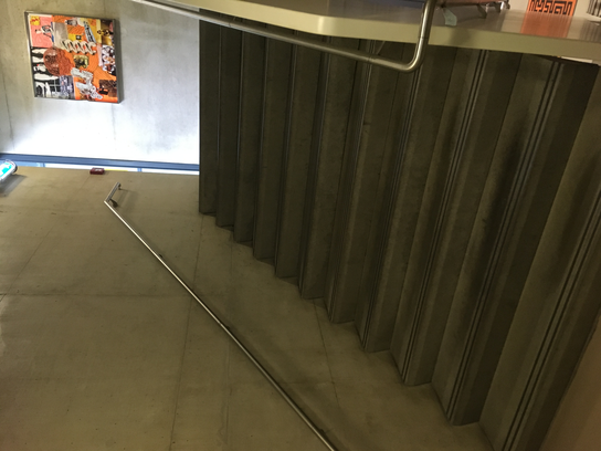 {kind: caption, keywords: [staircase, cables, rails, microphone, mounting]}