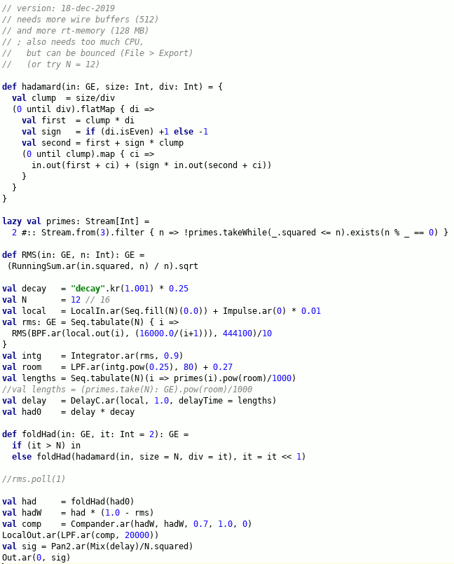 {function: contextual, date: 191218, keywords: [delay, delay lines, Scala, SuperCollider, translation, FDN]}