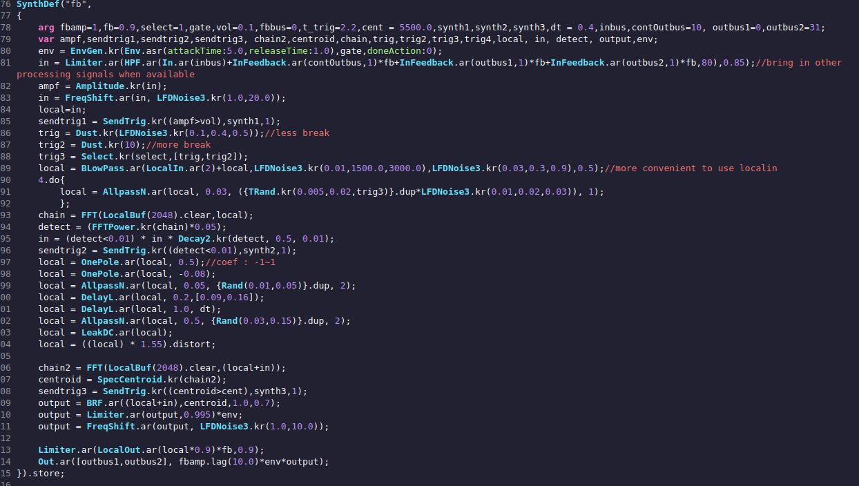 1. Tying to make a synth for the feedback protection + extracting some values that can be useful/meaningful for other possible modules. Started with the idea below, and sound