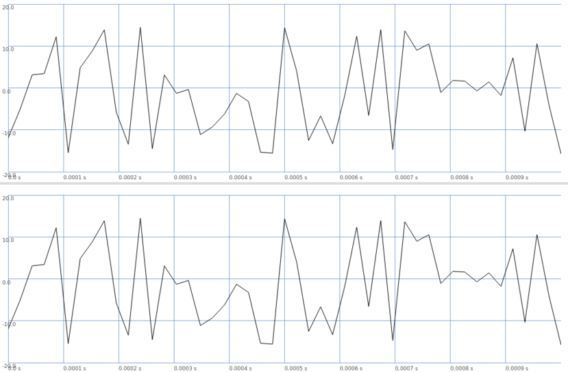 but when I embed the Ugen in the process I get slightly different results. I'd like to understand the reason. Here two recordings. In the first one the matrix is implemented as sc function, in the second one sc ugen. The process is completely deterministic, so there should be no difference in sound outcomes.