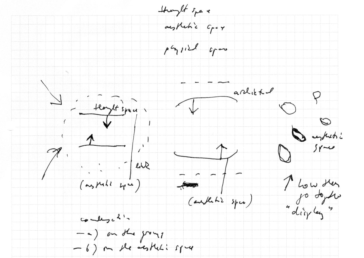 An interesting question is about the conjunction of the aesthetic space, how the four aesthetic layers will come together in the exhibition, how do they form then an overall space?