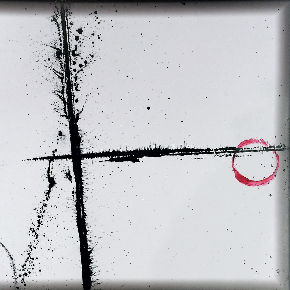 The visual rendering of the work is created with remedies like ink, rope and tear, the artwork is made directly on the vinyl covers - on location so to speak. The covers are divided into four large squares of 12x12 LPs, each square representing a geographical area corner of the overall work which is localized when the LPs are separated and distributed into world. One given Lp thus becomes a unique movement: from seller to buyer, from listener to listener, from side A to side B, and the four square works will therefore always be in flux, in a continuous relocation from the starting point. Hence the title "Lines towards a non-local Alchemy".