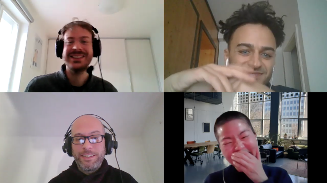 On the 15th of January 2021 Ji Youn Kang, David Pirrò, Daniele Pozzi and Hanns Holger Rutz joined a video call to talk about the Through Segments project. Originally, we planned for a retrospective discussion on our collaborative process, to review how things developed and how they eventually concretised in the Kunsthaus exhibition in September 2020. We recorded this discussion with the aim of extracting excerpts that could potentially become documentation fragments, perspectives and retrospectives on the project.