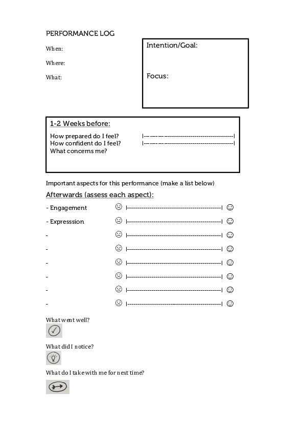 Logging your practice and performances can help to accumulate your knowledge about how your process works.
