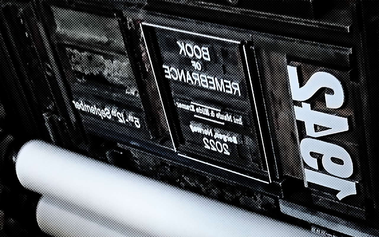 During the same dates, eighty years later, this artistic work commemorates the victims from Litzmannstadt ghetto through the book and the performance designed around it. Every day the performance is set up in a specific place around Bergen (CM7, Bergen Public Library, Bergen Railway Station, Tårnsalen, University Museum; Knut Knaus Auditorium, KMD; and Storetveit Church). At CM7 there is an exhibition that contextualises the performance.