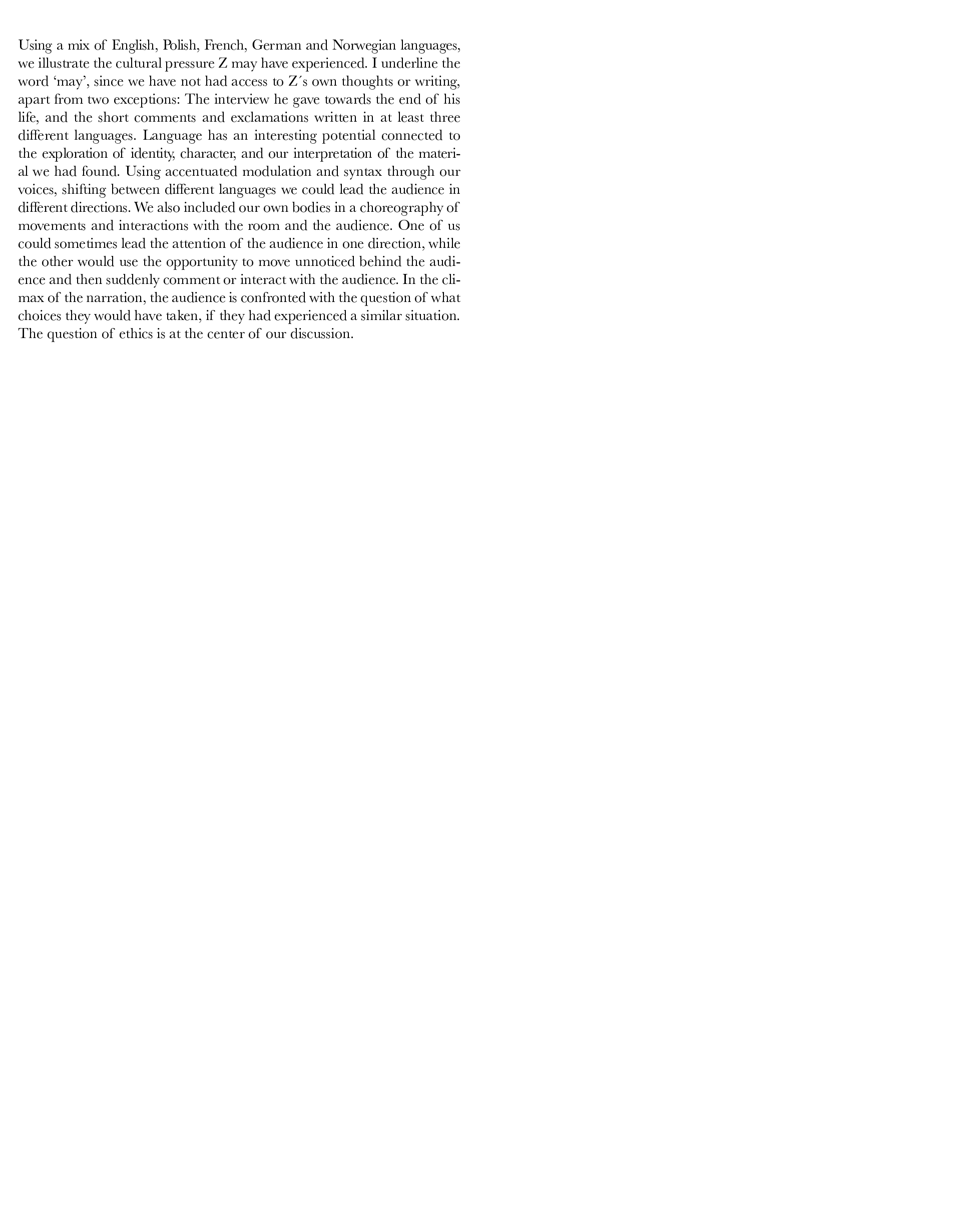 Figure 2: Prelude to the performance. Click image to see film. Camera/sound: Marek Woloszyn. Video edit: Thanee Andino.