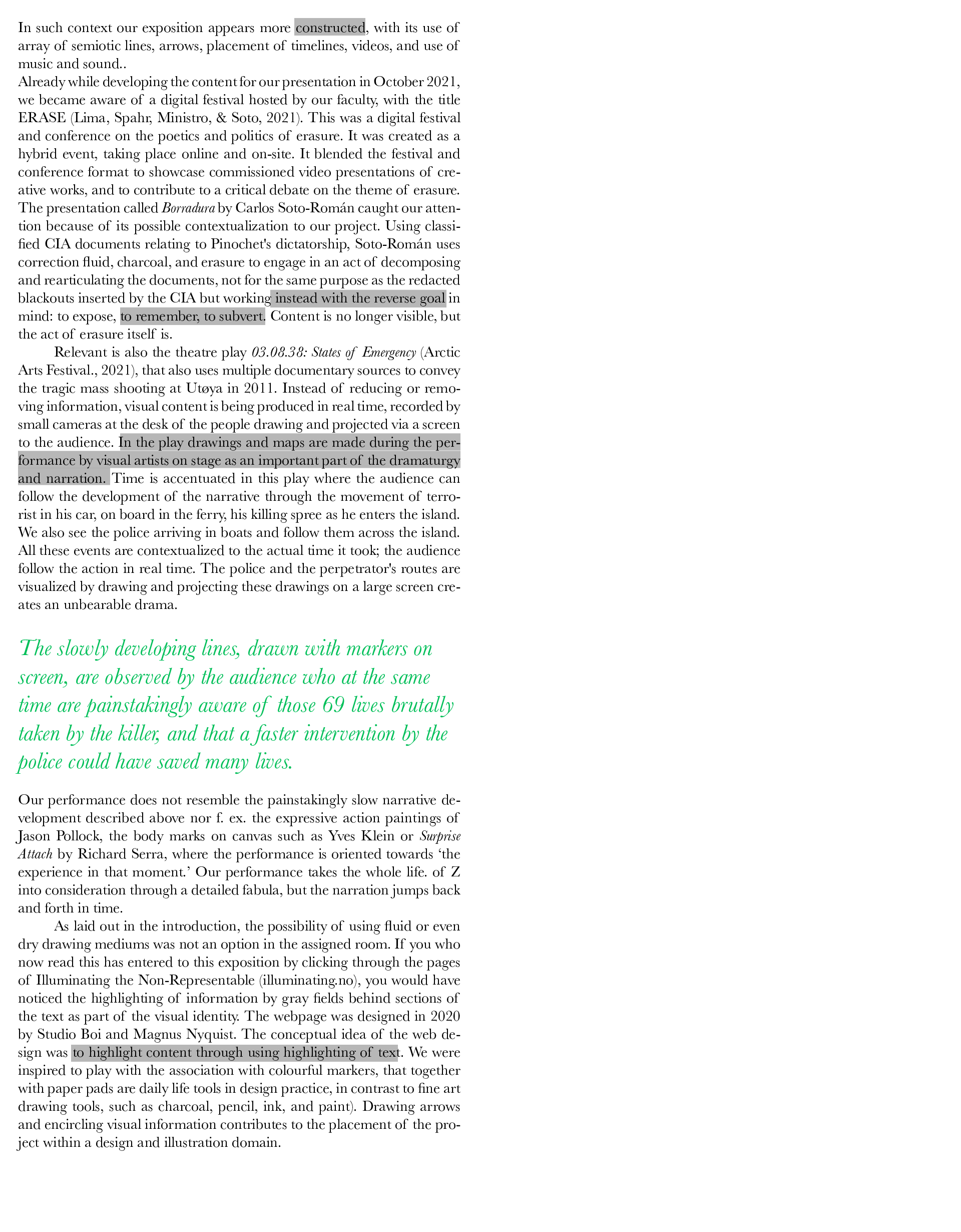 Figure 7 Experimentations with the uncoding of semiotic signs, such as arrows, highlighting and covering information.