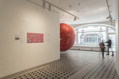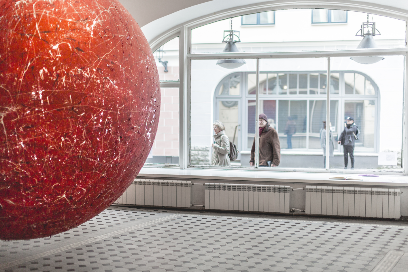4.“How Does One Become What One is Under the Sun of Capitalism (3D logo of ROCTT)”. Inflated polymer sphere. Matthias Sildnik. 2015.
