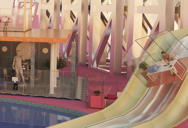 The WEDF project generates the virtual geographies of neganthropy and anthropy. The installation exhibition ‘Midscape’ (2018) comprises three pieces: Game of Devouring (6), Surplus (5), and Dream Enclave 1, 2 (7). These explore different movements related either to disruption and anthropy or to the transindividual and neganthropy. The purpose is to study the various dynamics between formations generated by the polling structure.