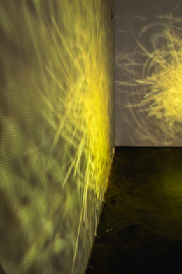 The material aspects of these presented artworks and their related practice develop on two parallel levels. Since conceptually and technically most of the presented pieces involve the processing of data, data is a material. But as data physically exists in electric circuitry of computer hardware, its material form needs to extend toward more perceivable domains. Computer graphics, as in animation pieces on LCD screens and projectors, are the closest to the original material, while producing prints achieves greater materiality, and physical three-dimensional objects such as ROCTT (4) are a metaphorical treatment of the underlying idea. All these different objects are parts of a spatial installation aiming to provide an immersive bodily and sensory experience. The gradual material connection to processes of data manipulation is a rhetorical means in composing installation spaces, seeking to bring the data’s subjectivity into proximity with physical, sensory, and cultural human life.