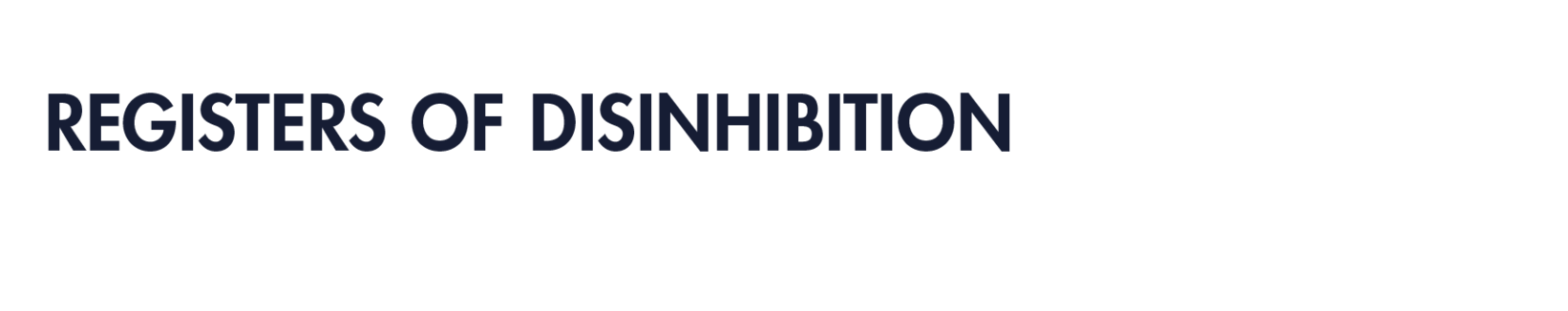 The exhibition documentation for ‘Happy Space 1 and 2’ and ‘Midscape’, containing the previously listed works, provide installation context. The labels of the photographs can be accessed by hovering over them, a click will show the image in isolation. Clicking on a video starts the playback. I recommend reading ‘Registers of Disinhibition’ to begin with, and from there to choose how to proceed, since I intend no strict order. After the initial section, the exposition is divided into two parallel text strands with the visual reference presented in the middle part for easy access. The research diagram (8), conclusion, and references can be found at the bottom of the page. The research diagram presents core concepts, working methods, and their relations in a concise graphical form. The texts refer to these when necessary.