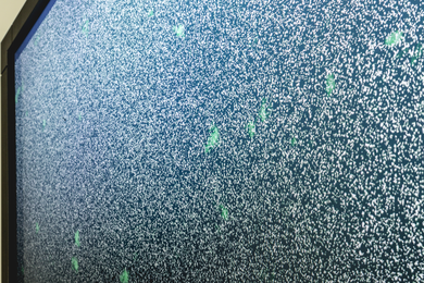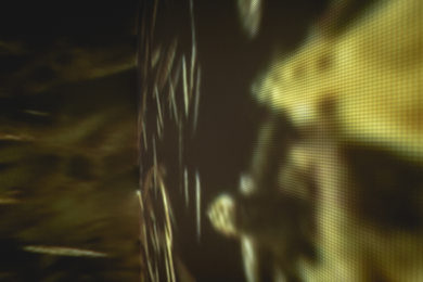 Game of Devouring (6) revisits John Conway’s (Gardner 1970) cellular automata Game of Life. This scheme produces complex movements on a regular two-dimensional lattice. Simple rules govern the change of state of each cell resulting in a tremendous variety of emergent patterns, producing thousands of iterations of the simulation until finally converging in a mute state with very little to no variation. Game of Devouring (6) presents an extreme acceleration of this simulation on a very large board. The board is comprised of 16000 x 8000 squares and its iteration speed is 60 whole board changes per second. This exhausts the thousands of productive iterations in about three minutes. A simple post-processing effect, which represents zones where movement has been active recently, helps to distinguish the relative zones of intensity. The simulation starts from a completely green intensely active state on the board, proceeding to separate zones of activity before culminating in black and white debris. It characterises the disruptive, accelerated disinhibition of the Anthropocene on a planetary scale. On a more general level, it provides a way to explore and connect the activity of vast amounts of individual agents on a unified plane.