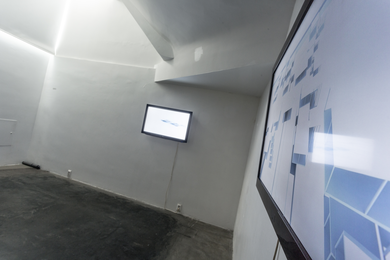 Dream Enclave 1, 2 (7) are still images of group formations of the Working Environment Form (2), presented on LCD screens. These are objects that are subject to change, and their present form is temporary. They are open to the aforementioned dynamics. As a part of the whole installation, they link physical space and the abstract social sphere. The installation begins with collective visions generated by the poll, proceeding through the dynamic of transindividuality, acting always on physical and perceivable space. It attempts to integrate various aspects of the overall process, in a spatial configuration. As the Game of Devouring (6) screen is in dialogue with an empty gallery space, it suggests a strategic interpretation of emptiness, since emptiness can always serve as a path for various movements. Surplus (5) emphasises the surrounding crowdedness and intensity of closeness. Together these movements and spatial configurations explore different dynamics immanent to assemblages generated on poll structures, opening up various paths for different levels of generative processes.