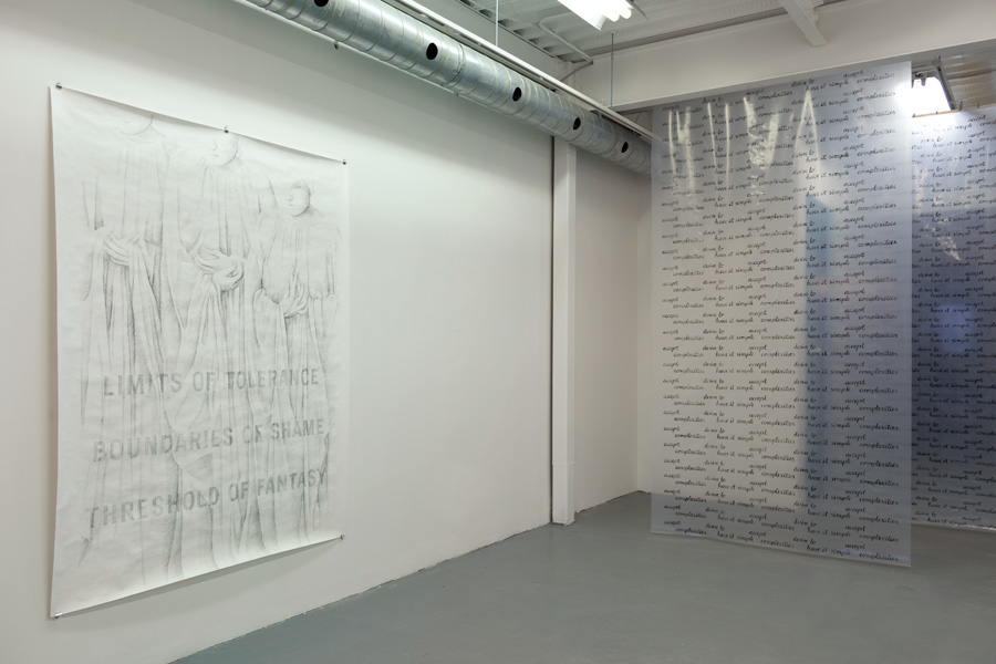 I am not, 2018. Drawing, ink on Tyvek, 110 x 210 cm.
