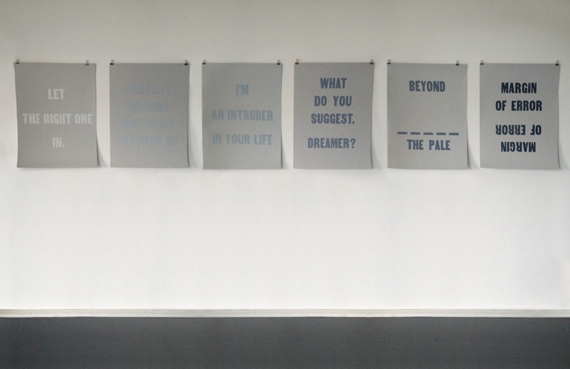 Let the Right One in, There is Nothing but Space Between Us, I'm an Intruder in Your Life, What Do You Suggest, Dreamer?, Beyong the Pale, Margin of Error (RotO posters), 2017. A series of 6 letterpress posters, edition of 3, 66 x 51 cm.