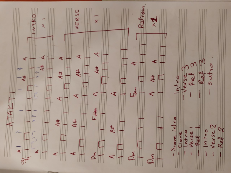 During one of the rehearsals our drummer, Christopher, played us a rhythmical sample of the song.