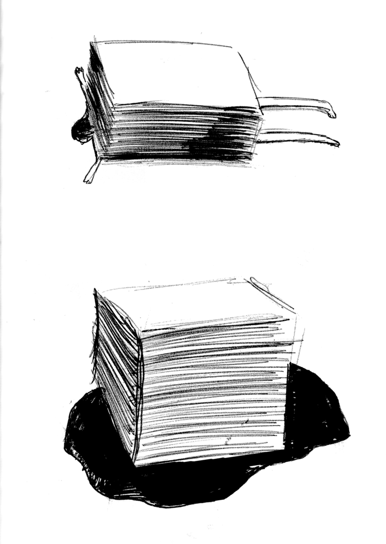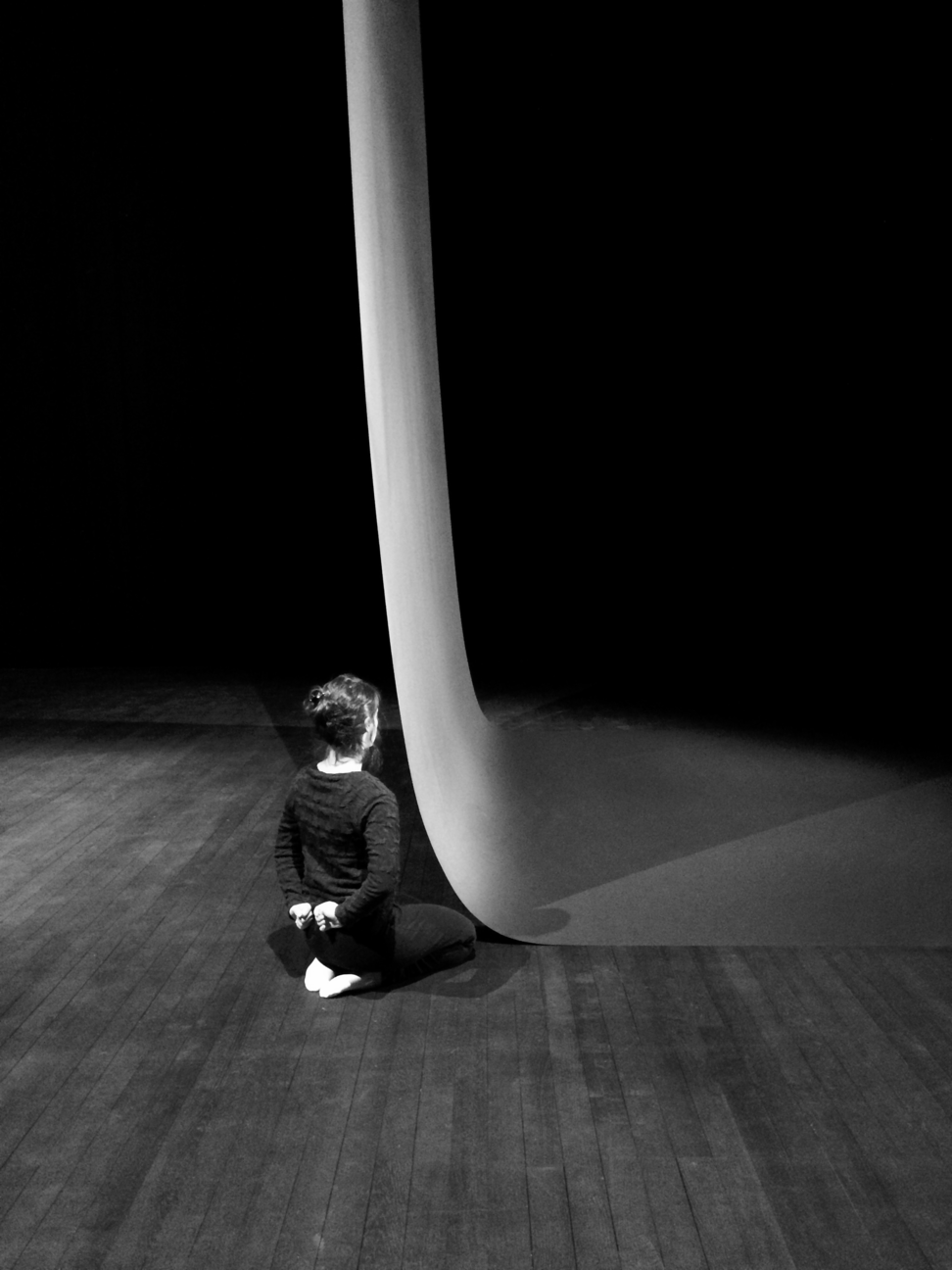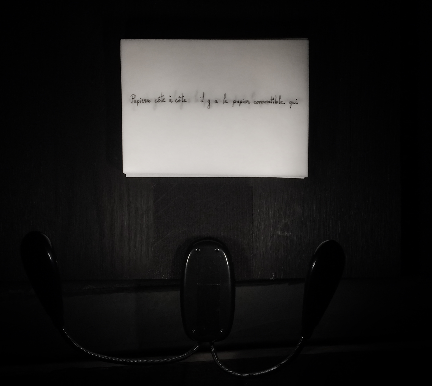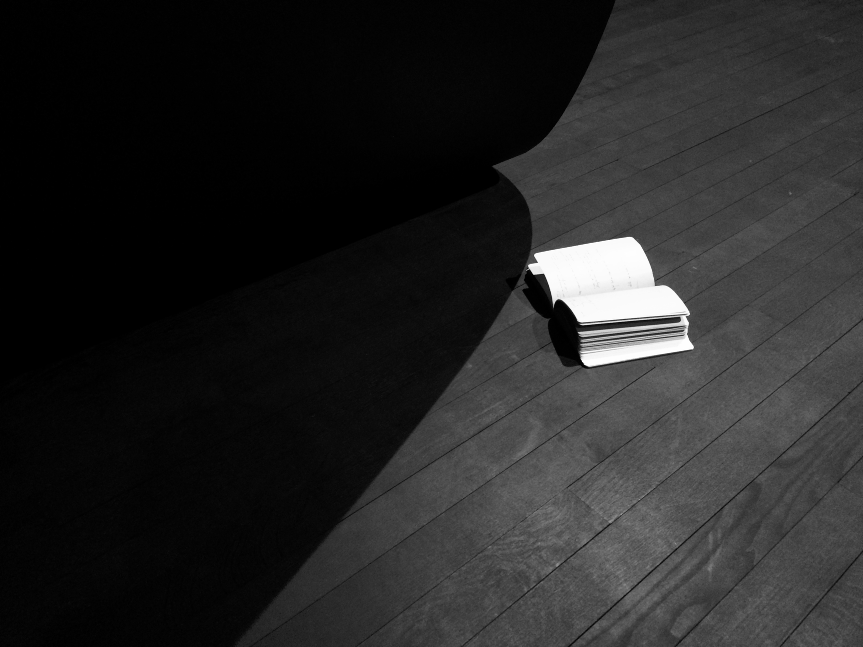 Papier multiforme, Papier comestible gathers magic and reading in a choreography of hands and eyes. The audience is invited to step inside a giant book, to research impertinent absence and to exercise ubiquity: being elsewhere, where they are not. In a vast and dark installation, dream-like scenes appear and disappear giving to see magic, dance, contrasted and fragmented images. In this obscure landscape that stretches and bends, the audience contemplates, reads, eats books, levitates, wanders, folds, and imagines.